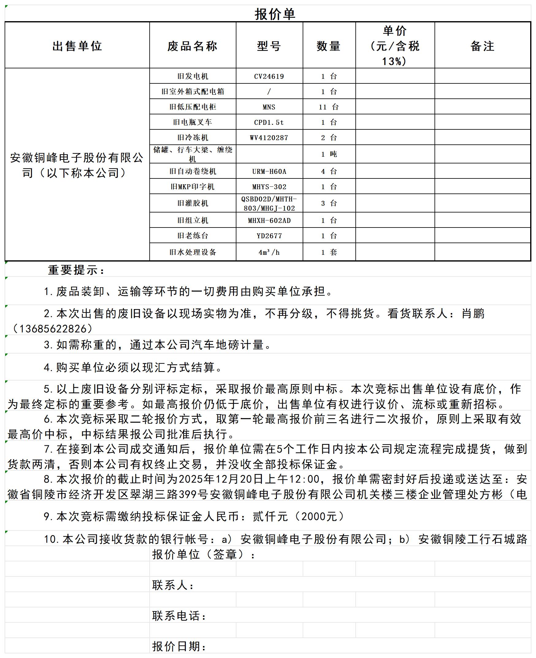 2025年12月廢舊設備處置報價單_Sheet1