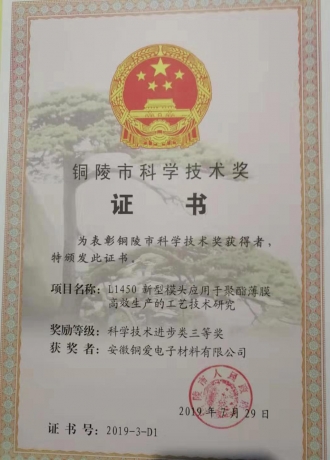 銅陵市科學技術三等獎