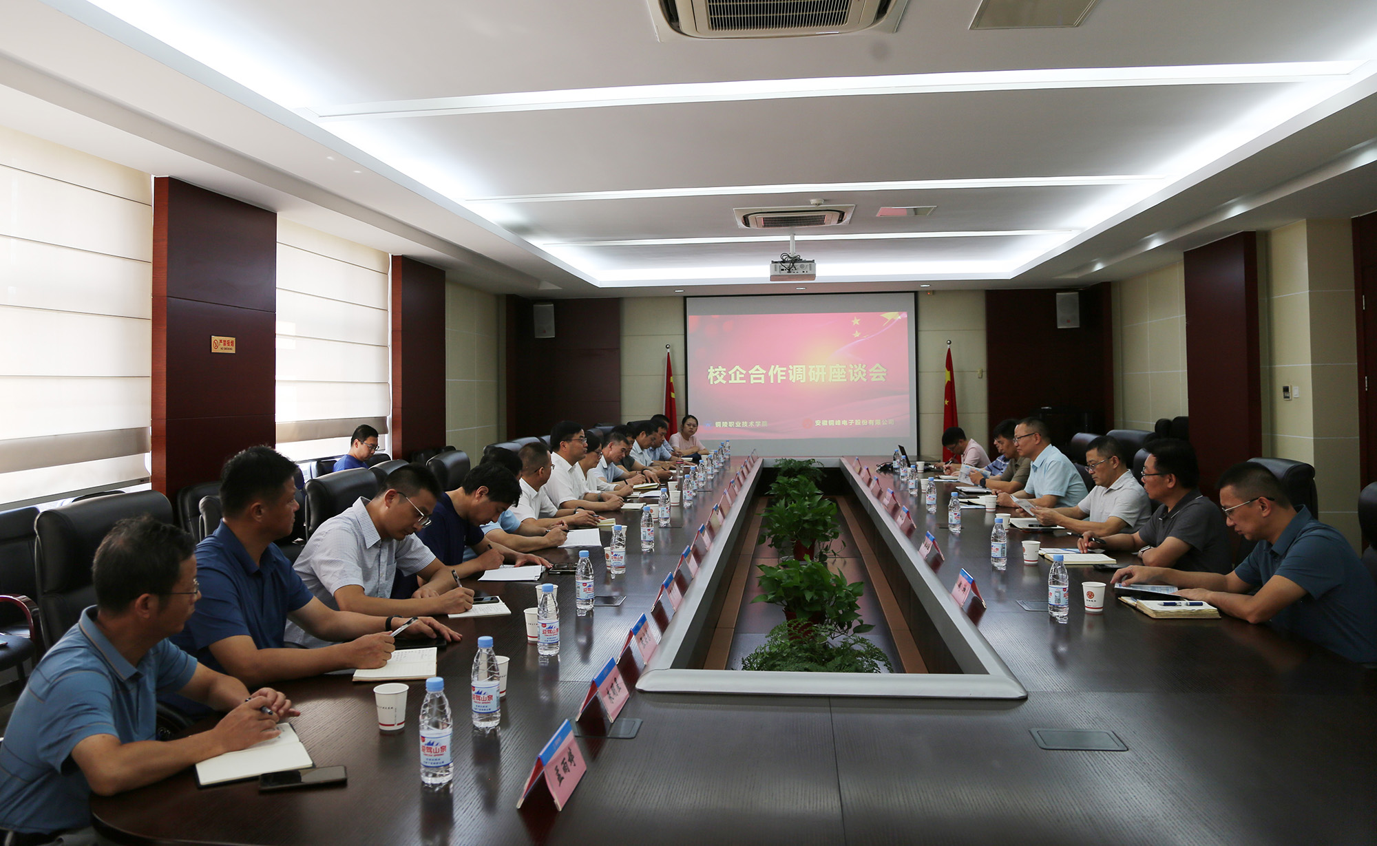 8月24日下午,銅陵職業(yè)技術(shù)學院黨委書記、市發(fā)改委主任凌勇,黨委副書記、院長凌濤,黨委副書記徐文等學院領(lǐng)導和相關(guān)職能處室負責人來公司開展校企合作調(diào)研座談活動。公司黨委書記、董事長黃明強,常務副總經(jīng)理、總工程師儲松潮,副總經(jīng)理、財務總監(jiān)郭傳紅,黨委副書記、紀委書記、工會主席潘世宇及相關(guān)職能部門負責人陪同調(diào)研。