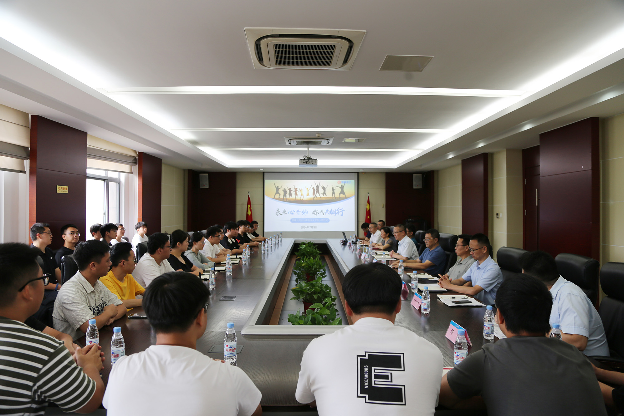 7月9日上午,公司于辦公樓一樓會議室舉辦2024年新進大學(xué)生入職儀式,黃明強、儲松潮、郭傳紅、潘世宇、李駿、何曉明、潘焱堯等在銅公司黨政領(lǐng)導(dǎo)班子成員,公司人力資源處、黨群工作部、團委等部門負(fù)責(zé)人和27名新進大學(xué)生共同出席了入職儀式。